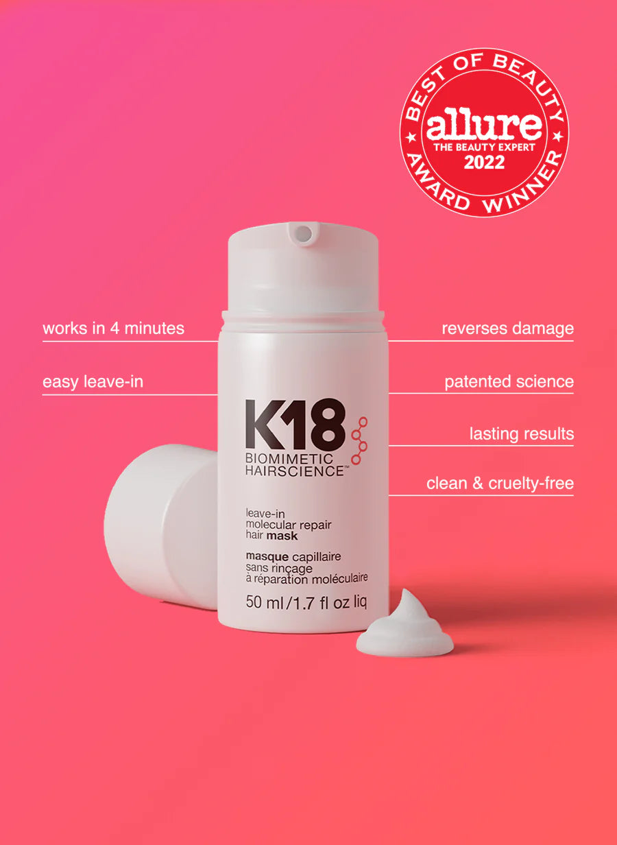 This at-home leave-in treatment infused with our patented K18Peptide™ repairs even the most extreme damage. Just one application renews hair to its most youthful, healthy state.